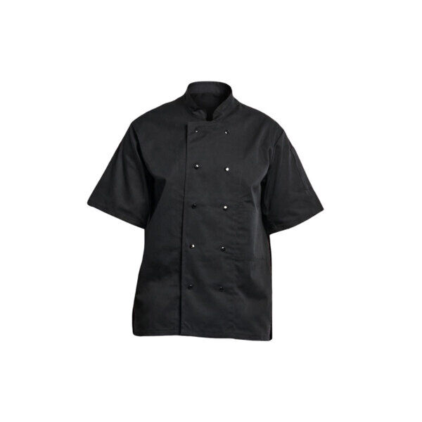 Qualité: Polyester/coton 65/35 245 gr/m² Tailles: 00 à 8 Couleur : Noir Descriptif : Fermeture double boutonnage pressions calottées ?illets d'aération 1 Poche stylo sur bras gauche 1 Poche intérieure gauche 2 Fentes d'aisance en bas du dos