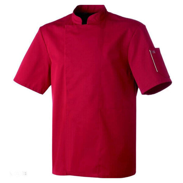 CARACTÉRISTIQUES : Veste de cuisine colorée manches courtes mixte Nero de chez Robur Une veste de cuisine peps pour homme et femme, avec parement beige sur le côté de la poche stylo ainsi qu'une fine broderie "R" de la marque. col officier plastron en V boutons pressions cachés poche stylo sur la manche gauche avec parement couleur beige poche poitrine intrieure dos découpes princesse MATIERES : 65 % polyester 35 % coton