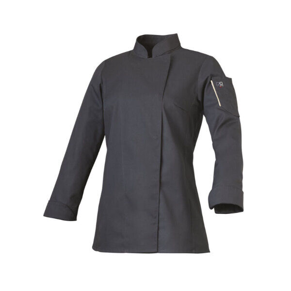 - Col officier - Veste ajustée - Boutons pression cachés - Pince poitrine - Poche plaquée stylo sur manche avec liseré