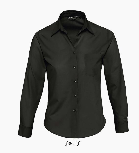 Qualité POPELINE POLYCOTON 65% polyester - 35% coton Poids : 105 g/m² couleur, 95 g/m² blanc Style Coupe cintrée Manches longues Col renforcé Poignets 2 boutons ajustables et patte capucin Patte 7 boutons ton sur ton Poche côté c?ur