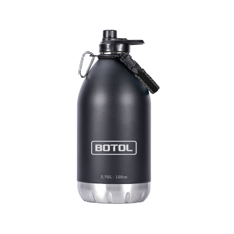 Cette gourde professionnelle BOTOL est annoncée comme étanche et isotherme. La fiche fournisseur précise une conservation de 12 heures au chaud et 24 heures au froid, ce qui en fait une solution pratique pour transporter de l’eau, une boisson fraîche ou une boisson chaude selon les conditions de travail. Sa capacité de 3,79 L - 128 oz répond aux besoins des utilisateurs recherchant une gourde grand format robuste et adaptée à un usage intensif.